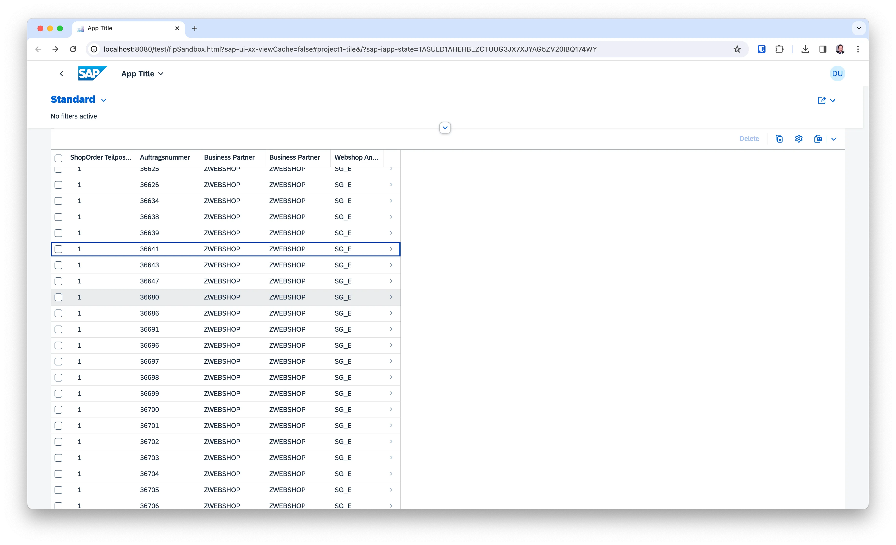 Using ShopOrder đź”— as the starting entity for the Fiori Elements app, I got a list with (many) entries as well as a detail page.