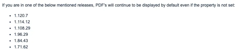 The (new) default value causes the PDFViewer to NOT continue to display the PDF directly (true: embedded). It will only show the download (false: link mode) button. Therefore, changing the default behavior of earlier versions and what users used to see: no PDF, but a download link.