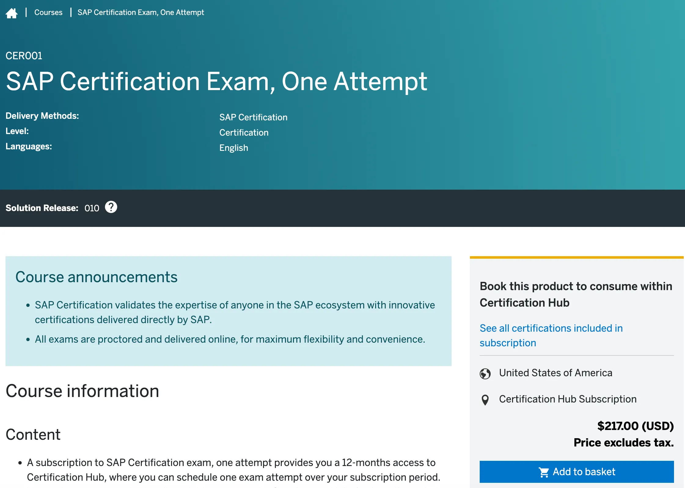 This will redirect to the SAP Learning Hub 🔗 and suggest buying a subscription. 1,368 $, but at least it comes with 4 certification exam attempts. Maybe not what is needed for attending only one exam.