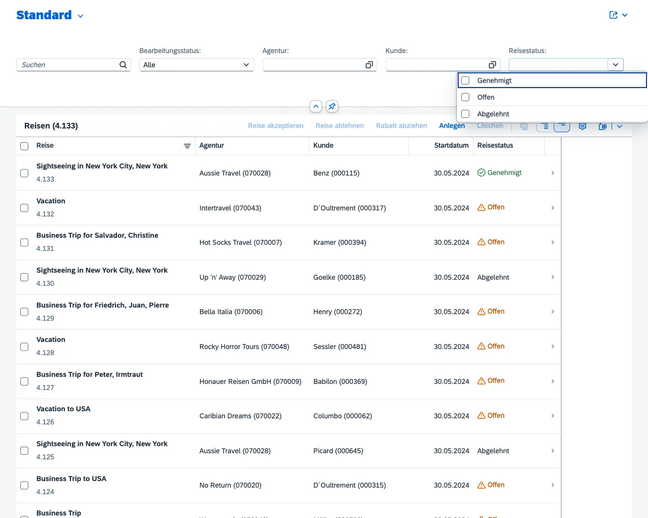 The same procedure is than applied to the travel status filter field. The value entered there is “Open”.