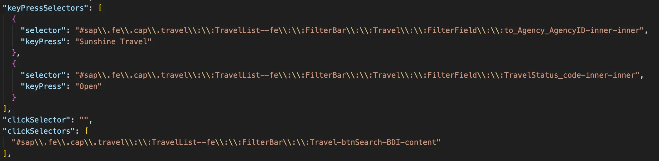 So far, the tests are simple. The app is accessed, and an action is performed. The provided test recording however performs a search on the table using two filter values: agency and travel status.
