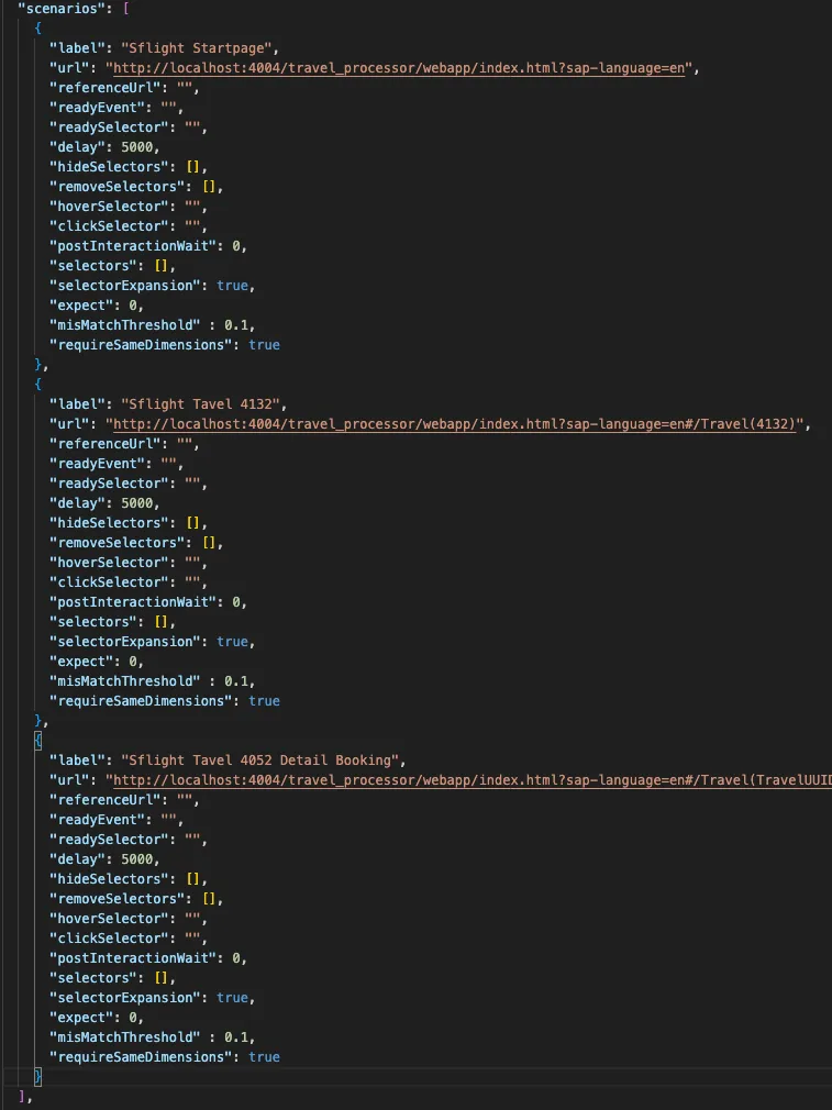 Tests are defined in the JSON file backstop in the array scenarios. The Fiori Elements app being tested allows to directly access entities. These pages are going to be tested: