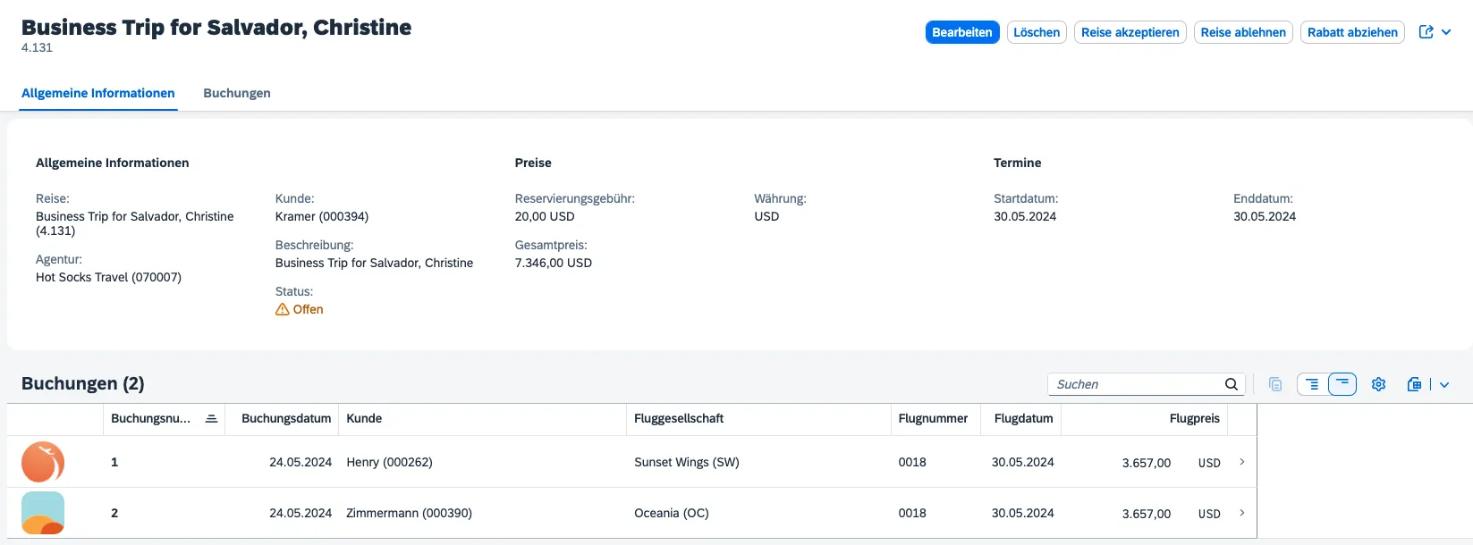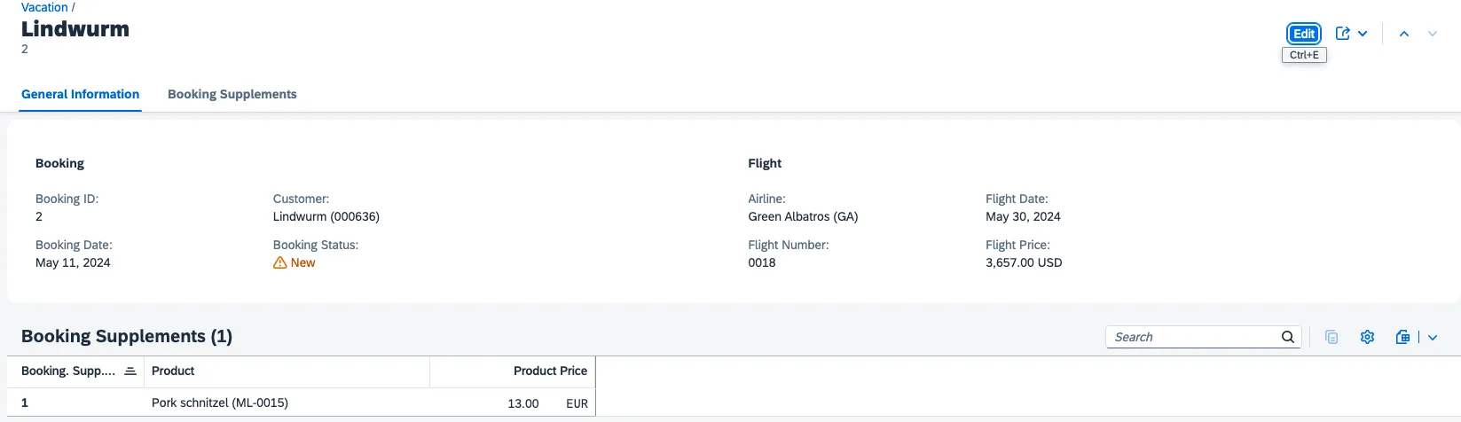 The CAP SFlight app serves in the example scenario as the developed app under test. It is a Fiori Elements app with a CAP Node.JS backend and comes with some data.