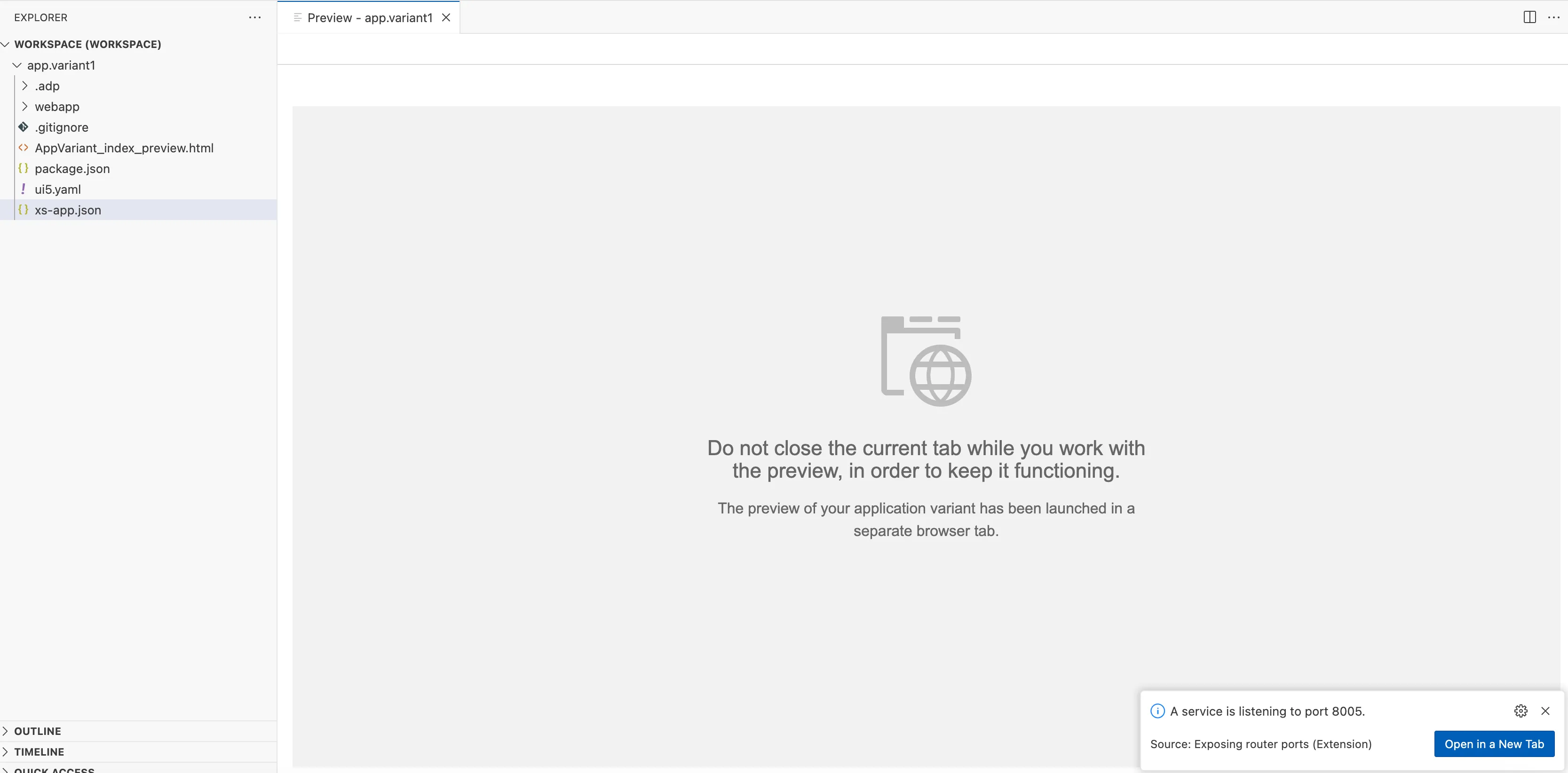 The app preview should now work. If not, check if the OData service for the standard app is working. See my blog: Fiori Adaption Project Preview error – missing OData Service for more information.