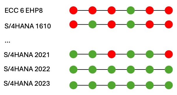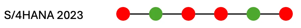 One way to calculate the Fiori Readiness is to look at a standard process from SAP. How far can you go with Fiori within such a standard SAP process? The SAP release is the main determining factor of the Fiori Readiness. You cannot expect a value of 100% for a process running on SAP ECC 6 EHP8, nor for older S/4HANA releases. Having a process fully executable on Fiori is also for SAP a journey. For newer releases, like 2023, the Fiori Readiness can be 100%. Looking at the Fiori Readiness of a process, starting from older releases to e.g. S/4HANA 2023, the missing Fiori apps (red dots) should turn green; indicating that a Fiori app is available.