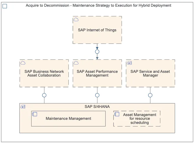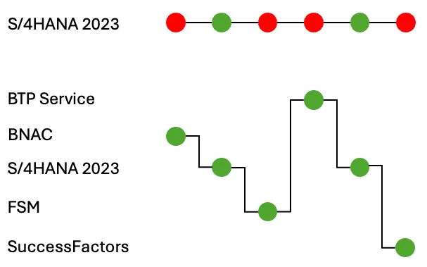 In the component view it gets clear that there is more than just one single S/4HANA system involved. S/4HANA is extended by several cloud products like BNAC, APM, SAM.