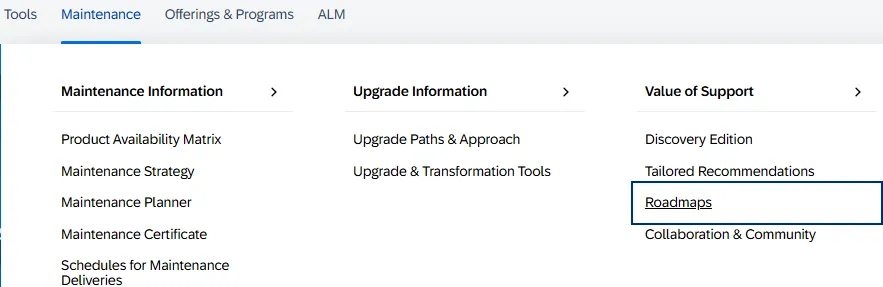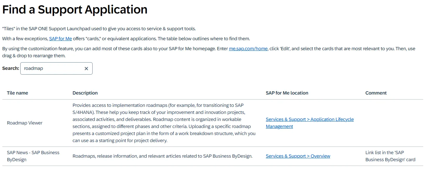 The page for 2022 FPS01 đź”— does not contain the link, for 2022 does đź”—. The link was removed in an update of the documentation between 2022 and 2022 FPS01. It took SAP a few years to reflect the SAP Service Marketplace retirement and SAP Support Portal replacement change, but only by removing the link. Why not add a new link? Why not reflect the change where to find the roadmaps in the service naming? Can SAP not use placeholder for texts that get updated with the correct, current name and link? When the page is generated again, references get updated automatically. For the users, life will be easier. We can find information without having to spend time searching for it. Only SAP needs to invest some time to ensure that links and names get updated automatically.