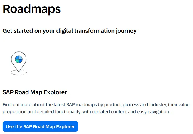 Here we have the link that opens the Road Map Explorer đź”— (is it roadmap or road map? SAP is using both). Here is the link so everyone can find it easily: https://roadmaps.sap.com đź”—