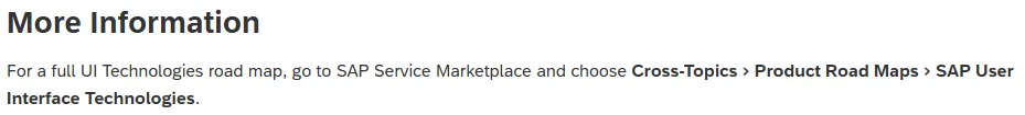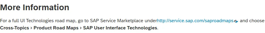 Going through some pages you’ll find service.sap.com. Here you find an overview page 🔗 listing where to find what or what was moved to SAP for me. SAP Help states to search for Cross-Topics > Product Road Maps > SAP User Interface Technologies. Searching for cross-topics shows nothing useful.