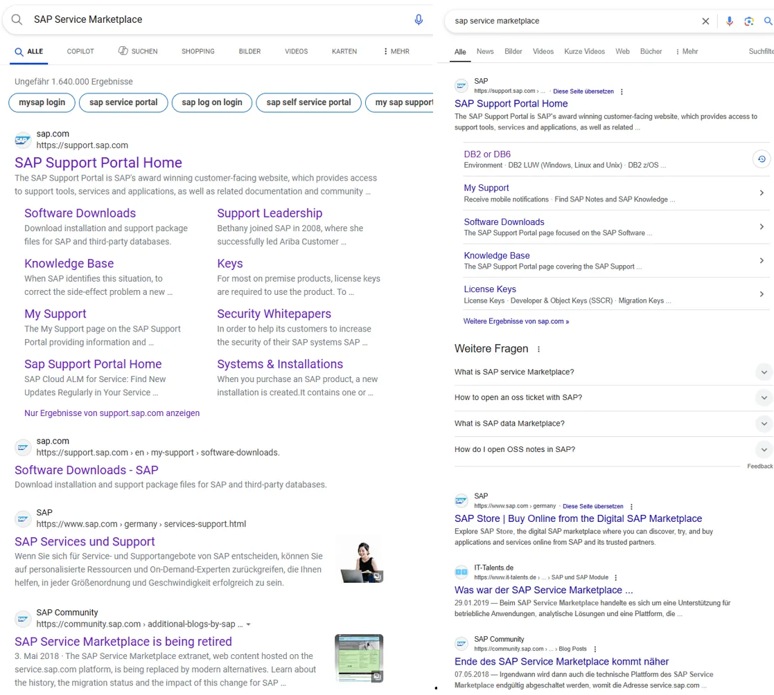 First search result indicates that SAP Service Marketplace is now called SAP Support Portal. What happened? At the bottom of the images a search result shows what SAP did: the SAP Service Marketplace is retired 🔗. The post is from May 2018. That’s 7 years ago. The SAP Help page is from 2025.