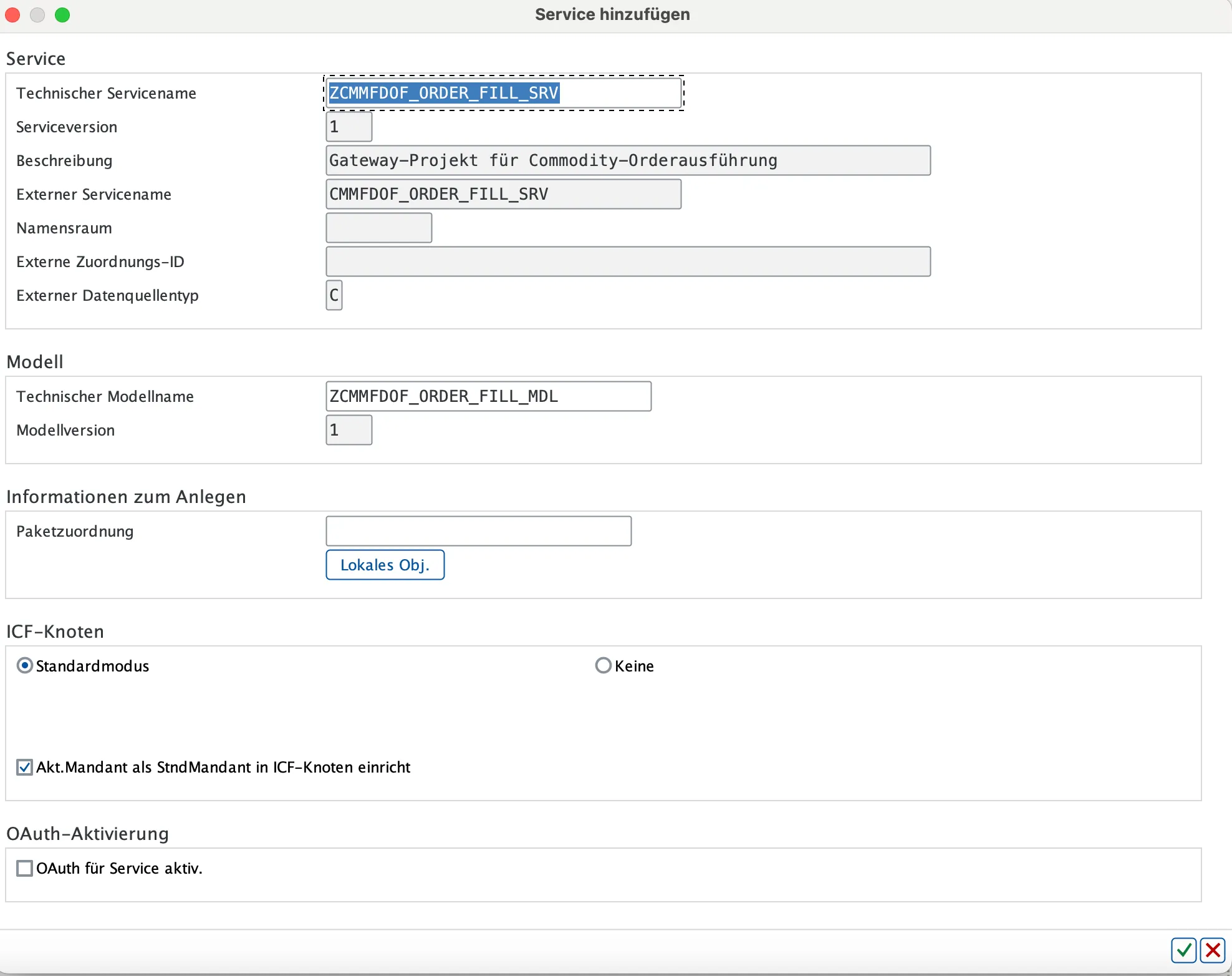 The solution to the problem is very simple: activate the OData service 🔗 of the app. Search for your app you want to adapt and activate it.