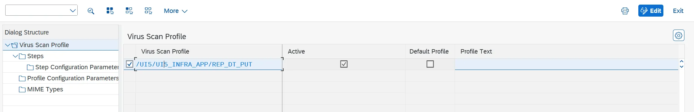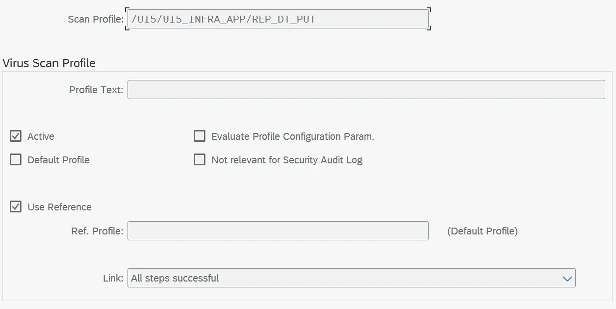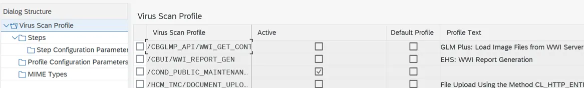 Active, but throws an error when validated. Maybe this is causing the error? It blocks the configuration to deactivate the UI5 scan profile and maybe also the configuration to turn off virus scanning?
