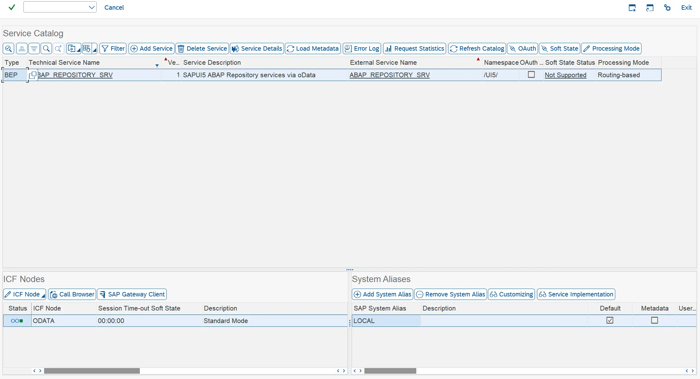 In SICF, the service is now listed under /sap/opu/odata/ui5/ as abap_repository_srv