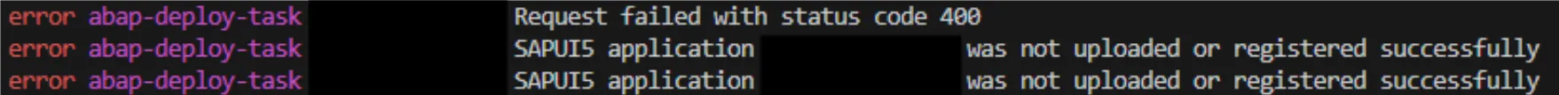 The app runs locally without any problems and can be build. Trying to deploy it via fiori deploy fails. Sample log output: