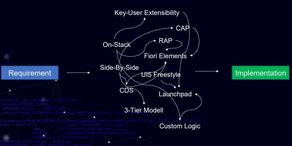 These changes are not only tangible because developers now must work with different technologies, languages and platforms like ABAP, JavaScript and web and everything that is needed to get this working: BTP, Cloud Foundry, Single Sign-on, etc. Plus, all the non-SAP products added. The strength that made companies build their processes on top of SAP was that it was “easy”. One person or a small team could deliver exceptional results. One person was able to cover a business area and deliver apps to close functional gaps. With S/4HANA and cloud, SAP decided to abandon this approach. Developers have now to choose a solution, use different technologies and find a way to manage these. Side effect here is that business users that could talk to maybe only one SAP developer now have deal with several developers, maybe even teams.