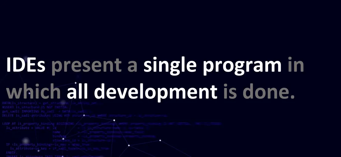 This does not mean that developing SAP apps is too complex. The normal high risk associated with custom development is manageable. We must deal with challenges that arise with how SAP is positioning their portfolio. We have to accept that the one integrated platform is gone. Today there are cloud solutions provided as SaaS. They run on a different technology stack. Some on ABAP, others on Java, or JavaScript or maybe something else. But what we can ask for, and what SAP must deliver, is to make SAP developers as efficient as possible. One single IDE that deserves the name IDE. I as integrated. I as the Roman numeral for 1. I as in intuitive.