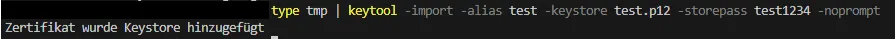 type certs.pem | keytool -import -alias test -keystore test.p12 -storepass test1234 -noprompt![]()